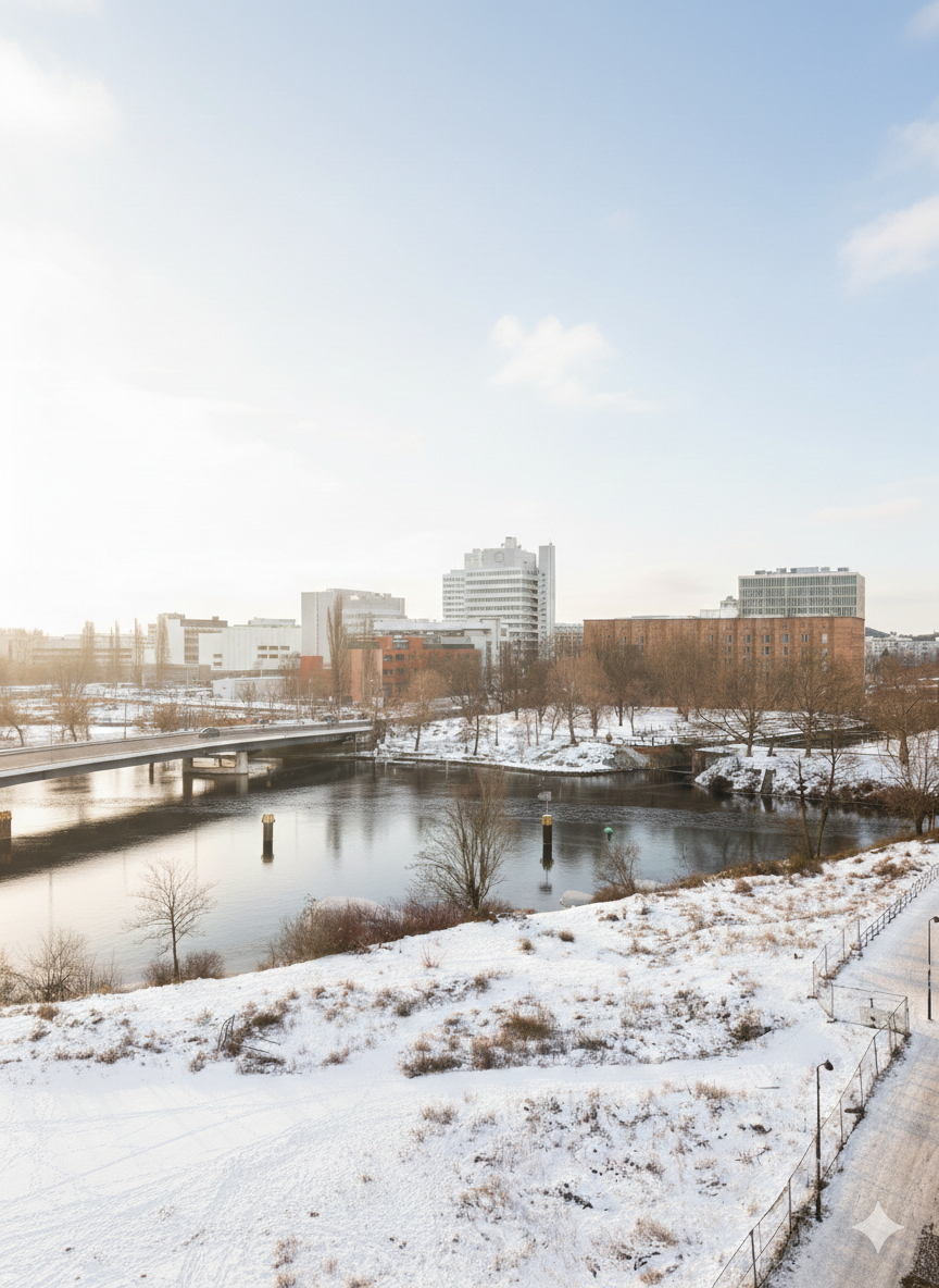 Voll ausgestattetes Apartment zur Straßenseite mit Blick auf die Europa City oder den Berliner Nordhafen. All-inklusive Miete.